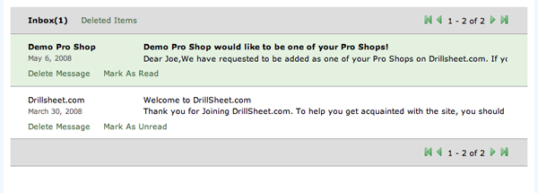 View messages that have been sent to you through DrillSheet.com.